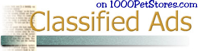 Do you have pets for sale, equipment such as pet collars, apparrel, books or anything that you think might interest someone else. Here is the place to list it. This is our classifieds section of 1000PetStores.com. If you are interested in placing an ad here let us know at classified ads. Give us all the details you want listed and how to get in contact with you. Please give summarized detailed information. Ads submitted in "ALL CAPS" may not be posted.