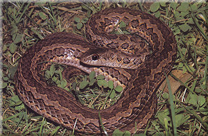 Physical Characteristics - The head is moderately set off from the neck with the upper jaw protruding beyond the lower one. The large eyes have vertical slits for pupils. The coloration of the back varies from grayish-brown to yellowish-brown and pale olive brown. The marking of the back and sides consist of a row of dark, roundish or lozenge-shaped blotches that sometimes combine in a zigzag or irregularly undulating band. On the tail the blotches merge into 3 longitudinal stripes that are separated from each other by light lines. The head is a uniform brown or black, and the whitish-yellow belly has gray to black blotches.