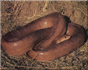 Physical Characteristics - The head is longish and hardly set off from the neck at all. the powerful body is equipped with a fully developed prehensile tail. There are no heat-sensitive pits in the upper labials. The ground color of the body can be any shade ranging from yellowish-brown to reddish brown. The back is covered with black rings that form chain-like rows and may fade into each other in places. In some specimens these dark rings are almost totally absent.